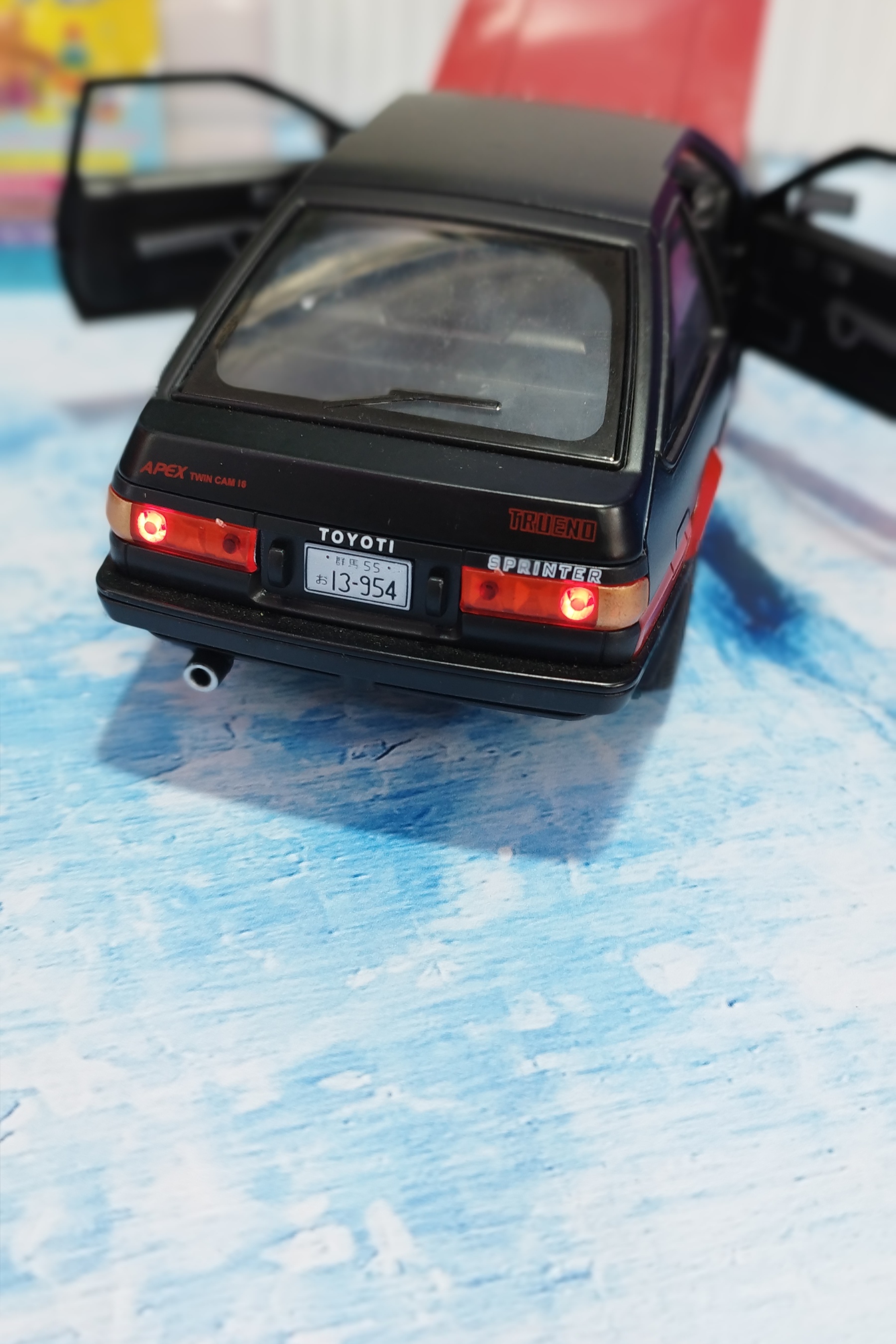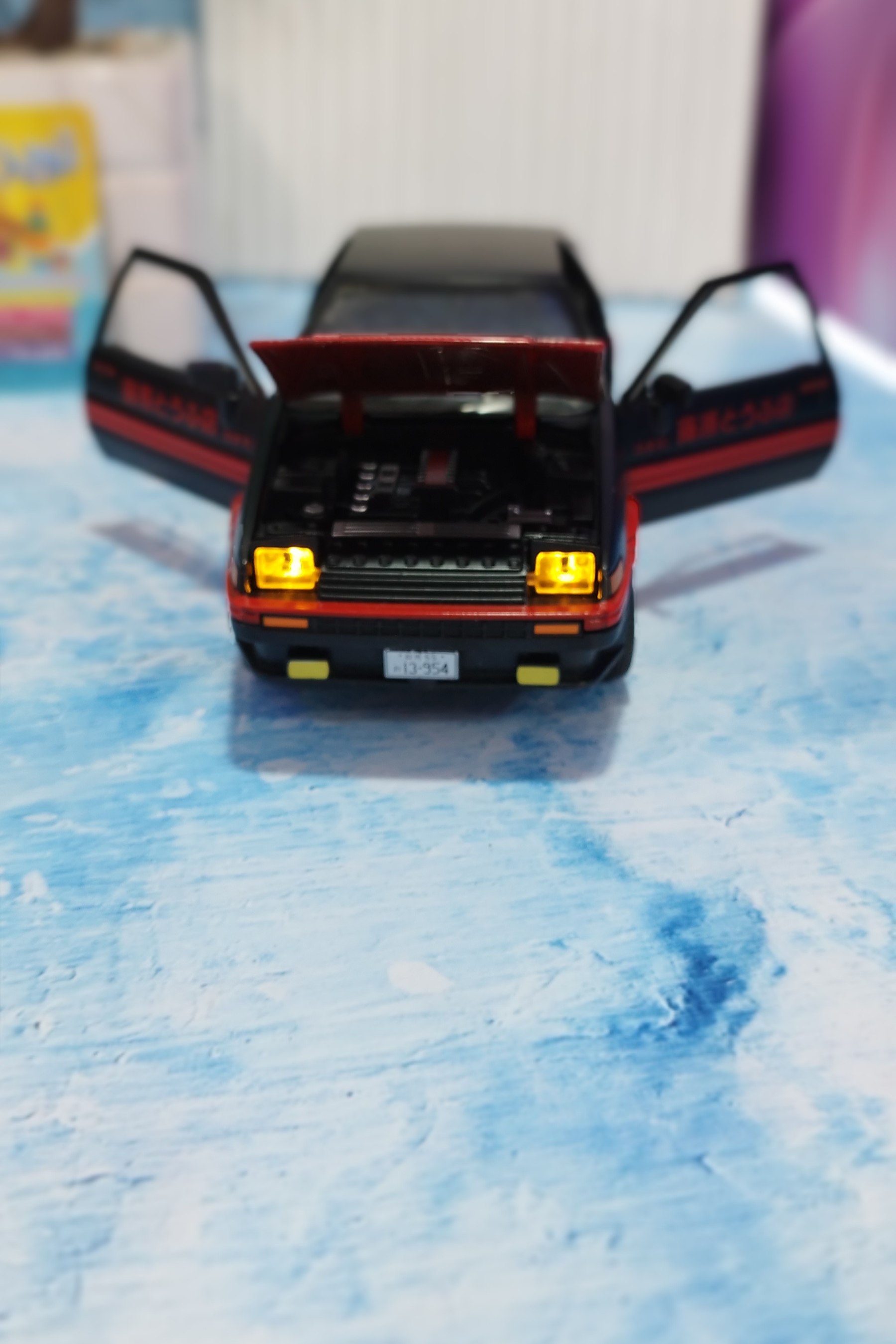 با جزئیات واقعی بدنه این ماکت از جنس فلز با کیفیت بالا ساخته شده و در برخی بخشها از پلاستیک مقاوم نیز استفاده شده است. فرم بدنه، چراغها، جلوپنجره و طراحی خاص دو رنگ بدنه (سفید و مشکی) با الهام از نسخه معروف AE86 Trueno ساخته شدهاند. دربها، کاپوت و صندوق عقب این ماکت بازشو هستند و به شما اجازه میدهند تا از جزئیات داخلی و طراحی موتور نیز لذت ببرید.