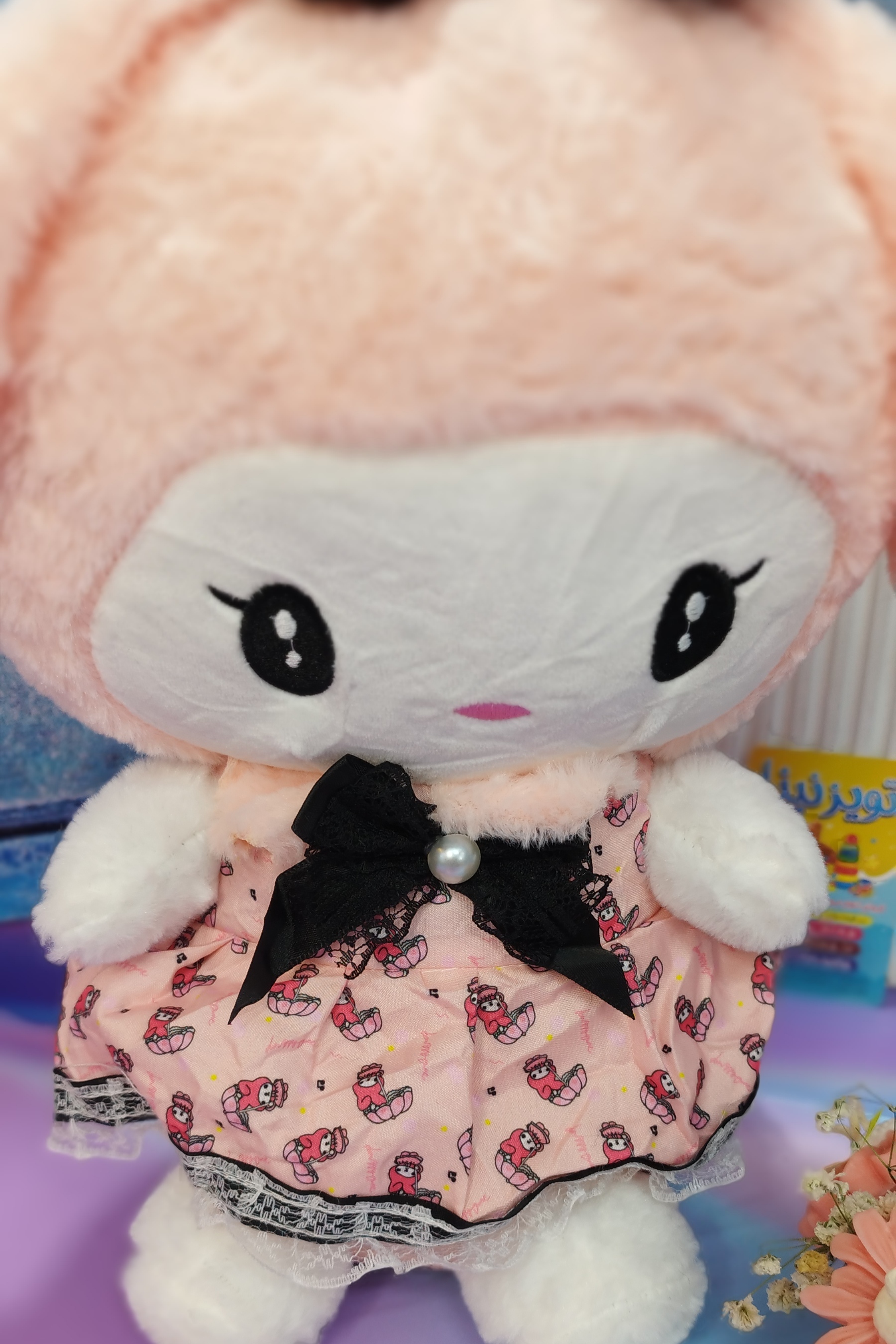 از دیگر عروسکهای جذاب و پرطرفدار سانریو که اغلب در کنار عروسک کرومی دیده میشود، عروسک ملودی است. ملودی نیز مانند کرومی یک خرگوش زیبا، دلربا و محبوب است اما با این تفاوت که کلاهی صورتی رنگ به سر دارد. از ویژگیهای شخصیتی این عروسک نیز که وجه تفاوت با عروسک کرومی محسوب میشود در ارتباط با مهربانی و آرامی او میباشد. به طور کلی ملودی در هیچ شرایطی عصبانی نمیشود و همیشه شاد و پرانرژی است. اگر قصد خرید هدیه برای تولد، پاداش و تقویت رفتارهای مطلوب را دارید، قطعا عروسک ملودی بزرگ گزینه مناسب و جذابی خواهد بود.