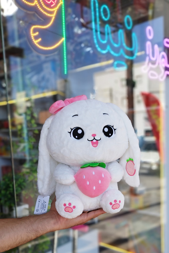 عروسک طرح خرگوش میوه ای مدل توت فرنگی یک عروسک بامزه ی دخترانه است. این عروسک سفید دختربچه ها را تا ساعات طولانی سرگرم می نماید. عروسک پولیشی خرگوش توت فرنگی ضدحساسیت بوده و به راحتی شسته می شود