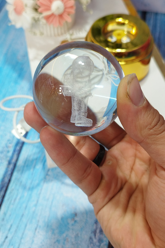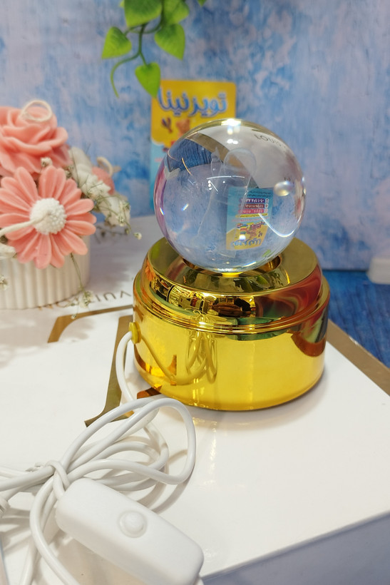 گوی کریستالی چرخان قطر 6 سانت میتواند یک هدیه بسیار زیبا به کودکان و حتی بزرگسالان باشد. پایه ی طلایی رنگ زیر گوی از طریق کابل مربوطه به کلگی شارژر متصل می گردد و سپس LED های روشنایی که داخل پایه ی طلایی رنگ طراحی شده اند و با اهرم چرخش خودکاری که در وسط چراغ های ال ای دی دارد گوی به طور خودکار میچرخد و روشنایی دل انگیزی به گوی می دهند طوری که طرح داخل گوی به زیبایی می درخشد و نور بر روی سقف اتاق می تابد . این محصول یکی از خاص ترین محصولات دکوراسیون داخلی می باشد .