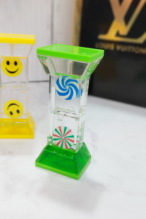 داخل این ساعت شنی به جای شن یک مایع قرمز رنگ شفاف معلق دیده میشود. این محصول کاربردی را میتوانید روی میز خود قرار دهید و آنقدر تماشا کنید تا کل مایع قطره قطره به طرف مقابل منتقل شود.