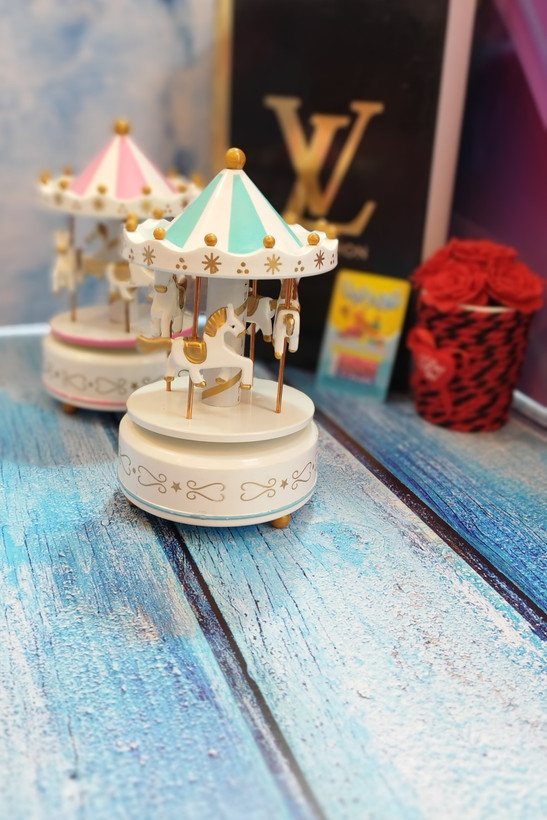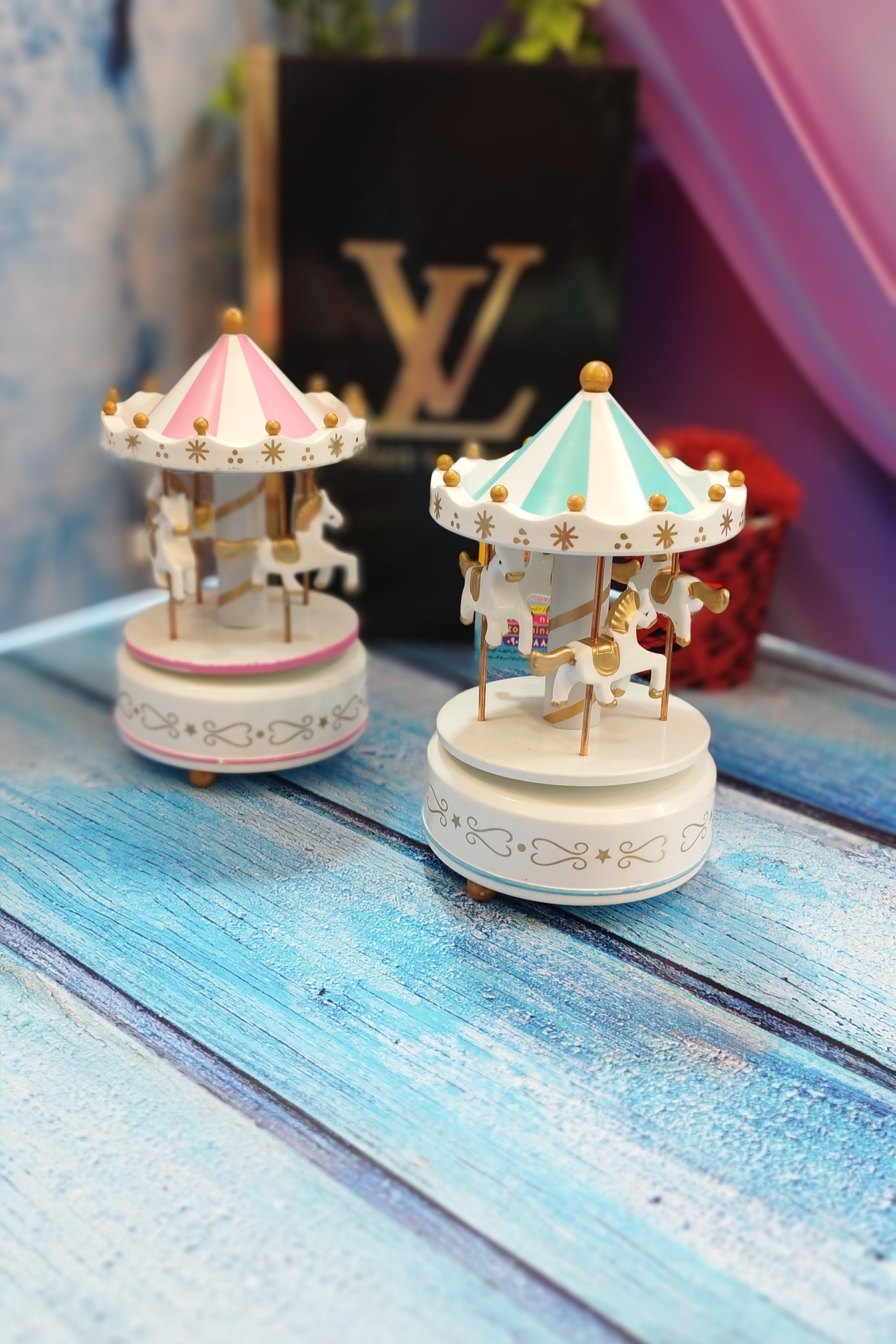 کاروسل موزیکال یا اسب موزیکال یکی از زیباترین لوازم موزیکال و فانتزی است که علاوه بر زیبایی بصری موزیک زیبایی را توسط موتور موزیکال خود پخش میکند. این طنین زیبا شما را به دنیای رویایی کودکیتان میبرد. موتور موزیکال درون این کاروسل از نوع مکانیکی کوکی است که با چرخاندن قسمت بالایی کاروسل شروع به کوک شدن میکند. بعد از رها کردن آن علاوه بر چرخش زیبای کاروسل آهنگ زیبای موزیکال در اثر ارتعاش شانه فلزی به گوش می رسد. این کاروسل اسب موزیکال به باطری و یا برف نیاز ندارد و با کوک کردن ساده و راحت دستی موریک را پخش میکند