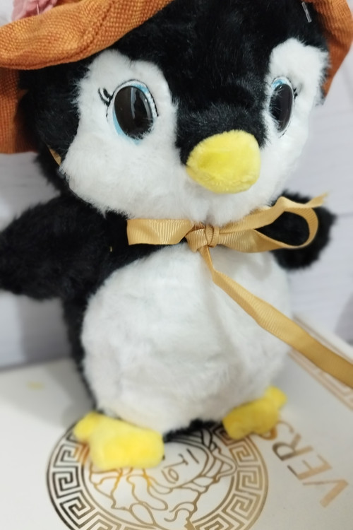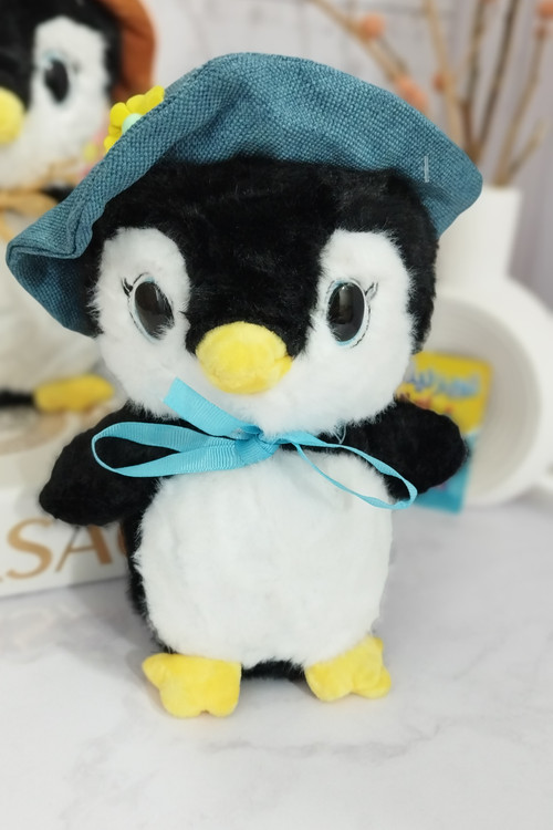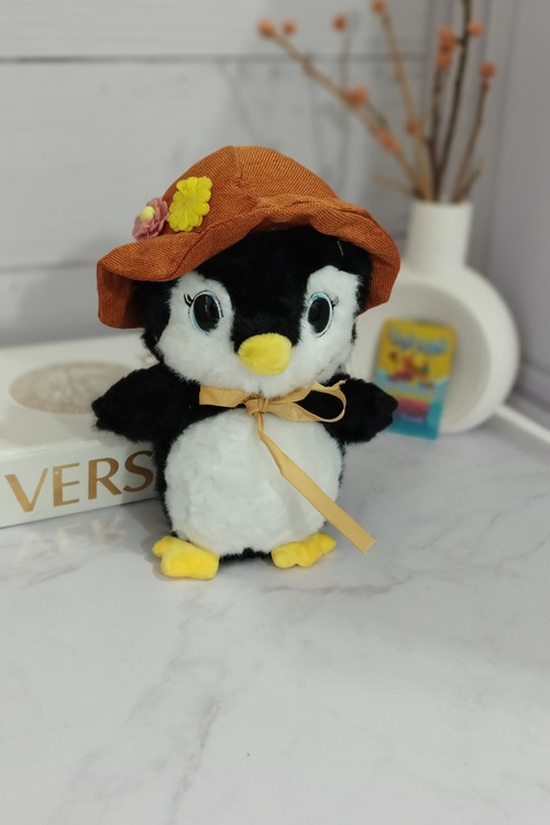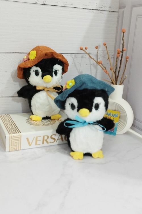 عروسک پنگوئن کلاه دار چشم تیله ایی اورجینال