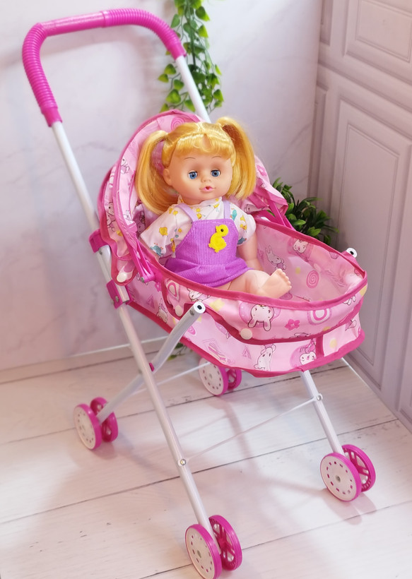 بهتره برای یه گردش دو نفره آماده بشید. عروسکتونو توی کالسکه قشنگش بزارید و حالا وقت پیاده رویه! این ست عروسک به همراه کالسکه برای نقش بازی کودکان شما مخصوصا دختربچه های عزیز می باشد و مناسب برای کودکان بالای 2 سال است.
