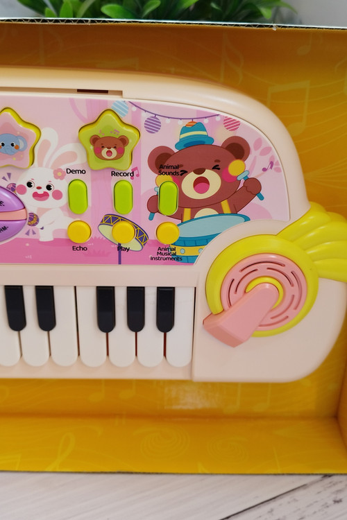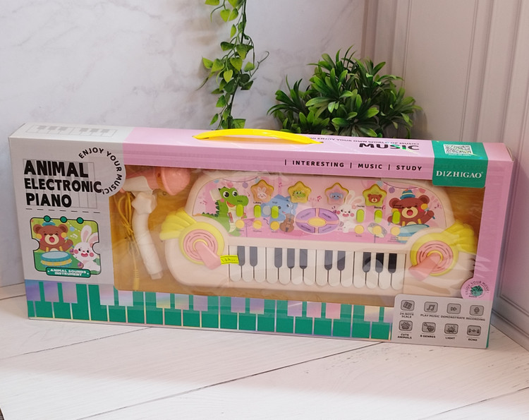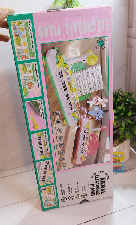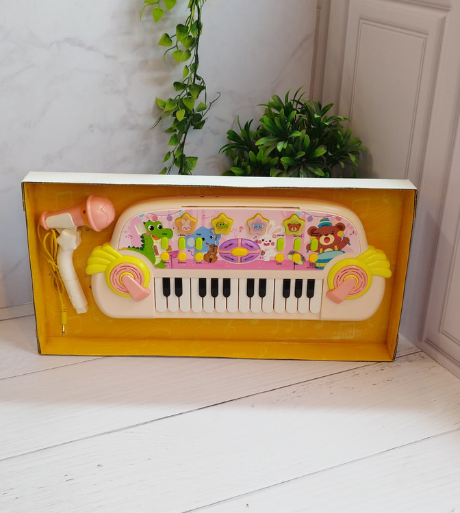 دارای 6 کارت از نوت های موسیقی های پر طرفدار کودکان مانند TwinkleTwinkle و یا ABC Song می باشد. ✅این ارگ میکروفنی یک محصول جذاب که بچه ها می توانند آهنگ های مورد علاقه شان را بخوانند و بنوازند و از بازی با این اسباب بازی موزیکال کلی لذت ببرند. ✅این ابزار موسیقی دارای مودهای مختلف موسیقی و صدای حیوانات می باشد. ✅دارای قابلیت کم و زیاد کردن صدا و دکمه خاموش و روشن است.