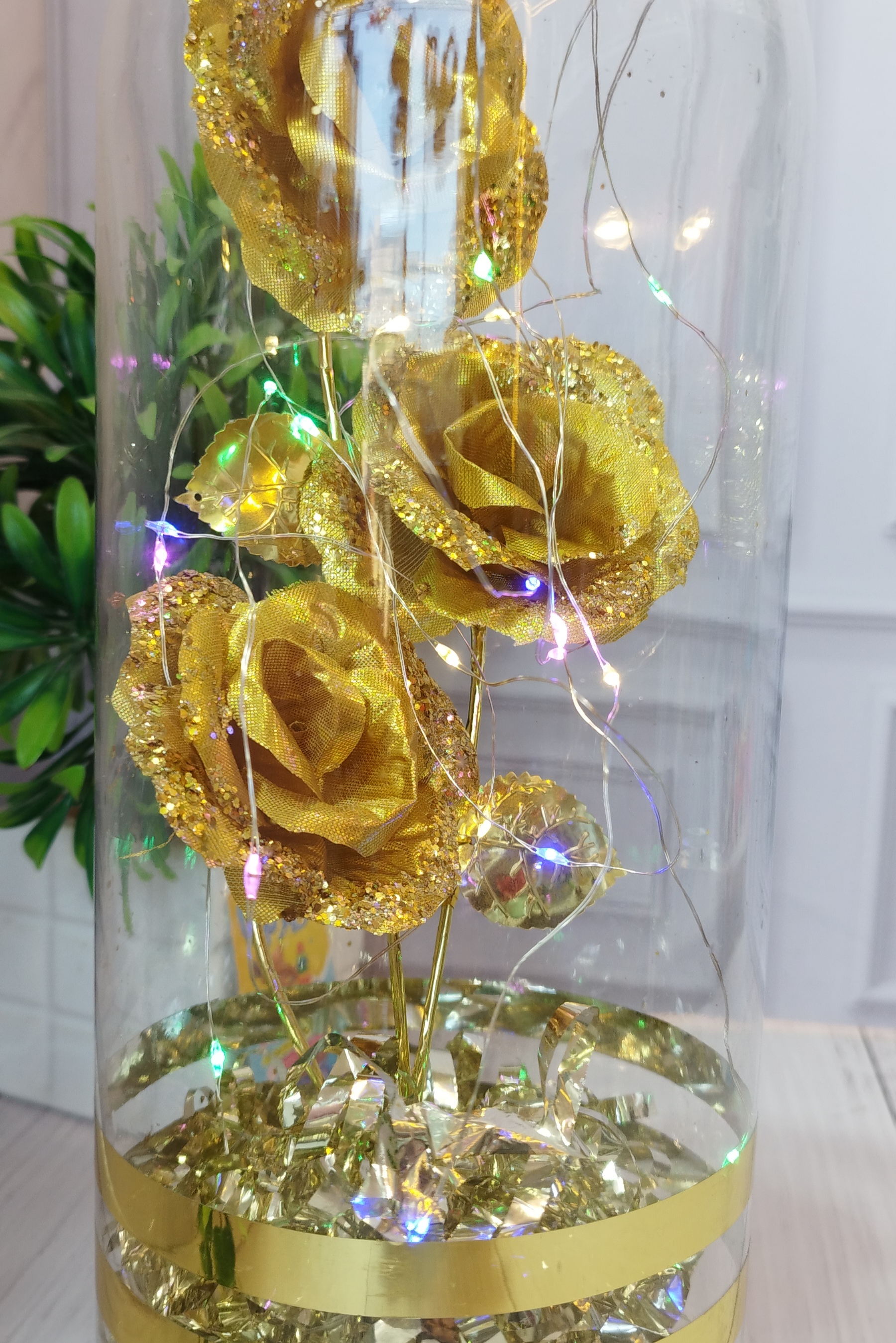 گل رز طلایی یک هدیه بسیار ماندگار خوشگل،این محصول زیبا با طراحی شیشه فلاکسی به همراه یک ریسه میتوانید آن را روشن کنید و جلوه زیبا را به ارمغان بگزارید