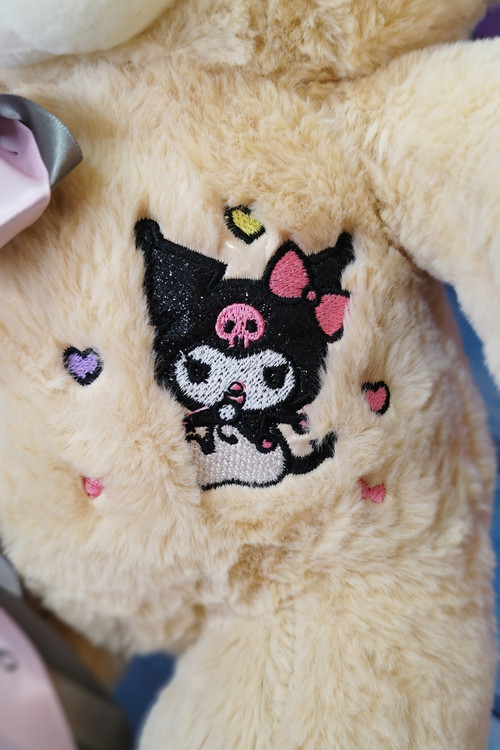 جزئیات عروسک: استیکر کرومی گلدوزی شده روی سینه،پاپیون دار