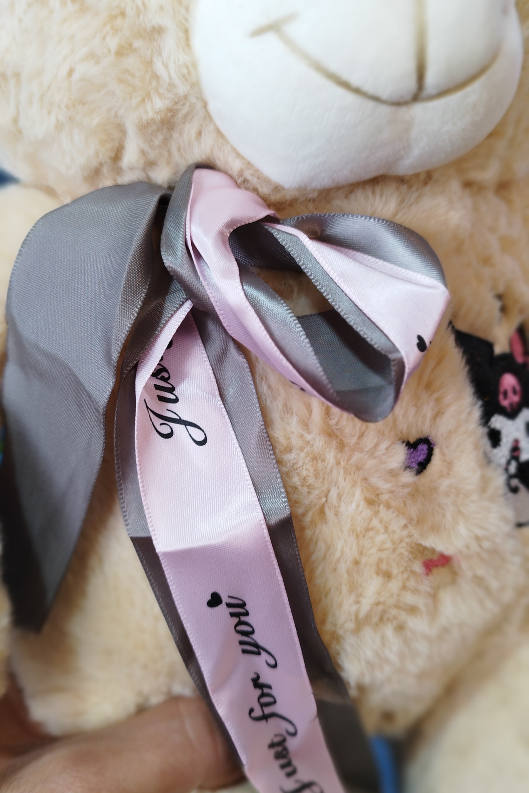 جزئیات عروسک: استیکر کرومی گلدوزی شده روی سینه،پاپیون دار