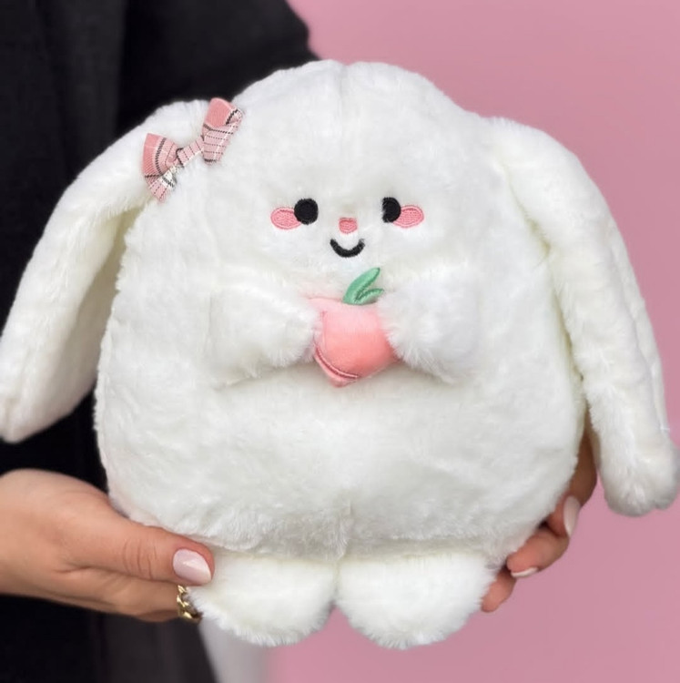 عروسک خرگوش هلو به دست بغلی ترین عروسکی است که می توانید داشته باشید. این عروسک یک خرگوش تپل سفید شکمو است که یک هلو در دستانش است. با دیدن این عروسک چاره ای جز بغل کردن و فشار دادن آن نخواهید داشت. اگر به عروسک های نرمالو علاقمند هستید ، خرید عروسک خرگوش هلو به دست را به عنوان یک عروسک به شدت نرمالو به شما پیشنهاد می کنیم.