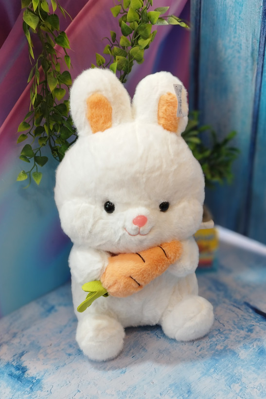 عروسک خرگوش هویج به دست از عروسک های محبوب و جذاب مورد علاقه ی دختران است. این خرگوش هویج دار عروسک زیبا و پرطرفداری ست که طراحی خاص و جالبی دارد. عروسک خرگوش هویج به دست، توانسته توجه بسیاری از کودکان و حتی بزرگسالان را به خود جلب کند. خرگوش هویجی با لبخند زیبایش می تواند هدیه ی مناسبی برای دخترها باشد. این عروسک پولیشی درجه یک کودکان را تا ساعات طولانی سرگرم می کند. خرگوش گوش هویج به دست برای سیسمونی نوزادی نیز انتخاب مناسبی است. عروسک خرگوش هویج به دست با رنگ سفیدی که دارد به راحتی با اتاق خواب و وسایل سیسمونی ست می شود. اگر به دنبال خرید عروسک پولیشی هستید ، در خریدعروسک خرگوش تردید نکنید و به صورت آنلاین یا حضوری میتوانید خرید کنید