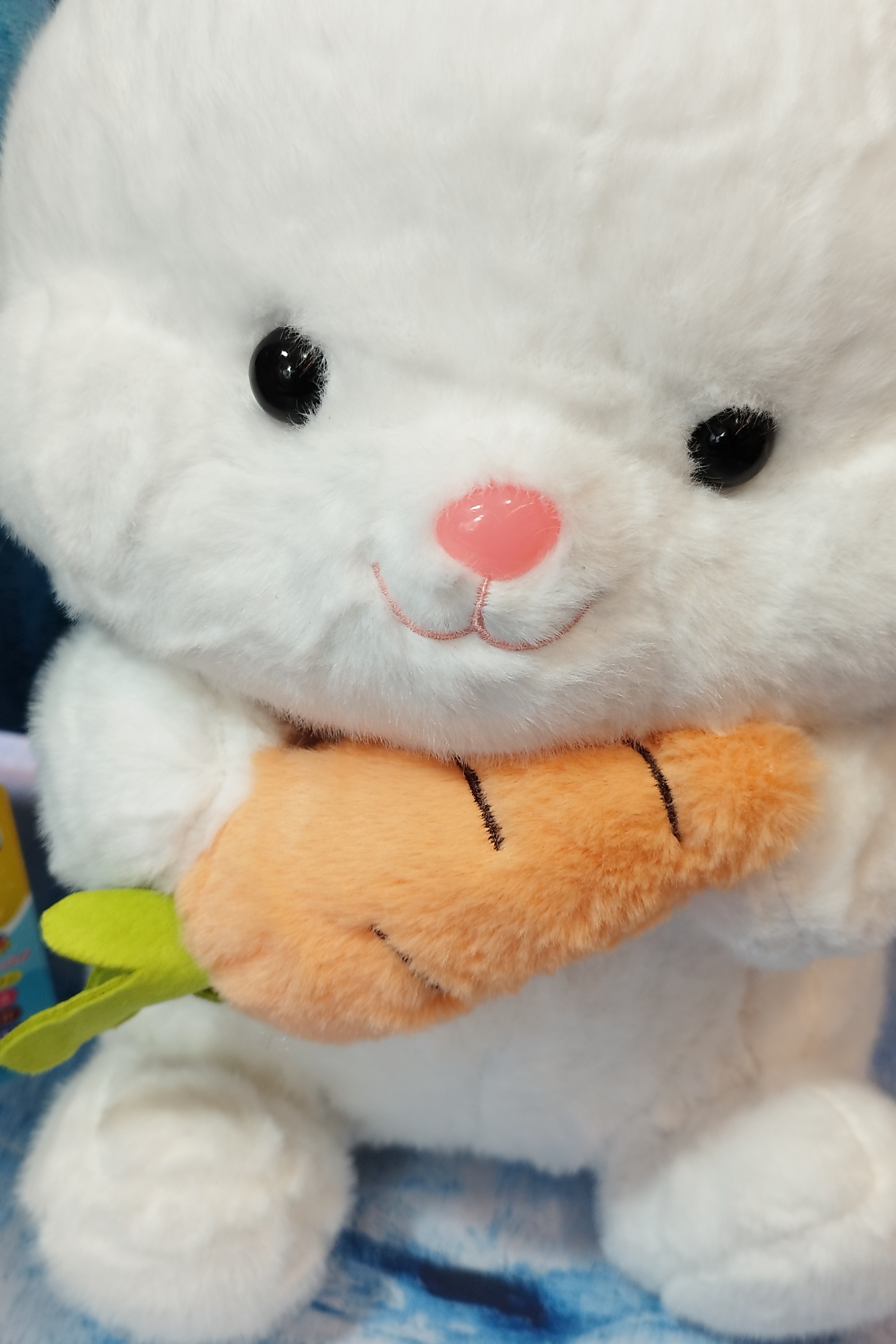 عروسک خرگوش هویج به دست از عروسک های محبوب و جذاب مورد علاقه ی دختران است. این خرگوش هویج دار عروسک زیبا و پرطرفداری ست که طراحی خاص و جالبی دارد. عروسک خرگوش هویج به دست، توانسته توجه بسیاری از کودکان و حتی بزرگسالان را به خود جلب کند. خرگوش هویجی با لبخند زیبایش می تواند هدیه ی مناسبی برای دخترها باشد. این عروسک پولیشی درجه یک کودکان را تا ساعات طولانی سرگرم می کند. خرگوش گوش هویج به دست برای سیسمونی نوزادی نیز انتخاب مناسبی است. عروسک خرگوش هویج به دست با رنگ سفیدی که دارد به راحتی با اتاق خواب و وسایل سیسمونی ست می شود. اگر به دنبال خرید عروسک پولیشی هستید ، در خریدعروسک خرگوش تردید نکنید و به صورت آنلاین یا حضوری میتوانید خرید کنید