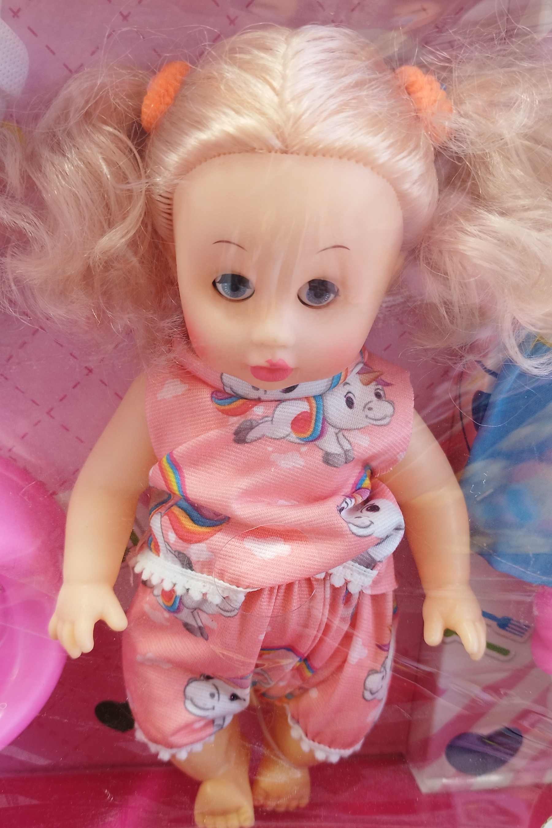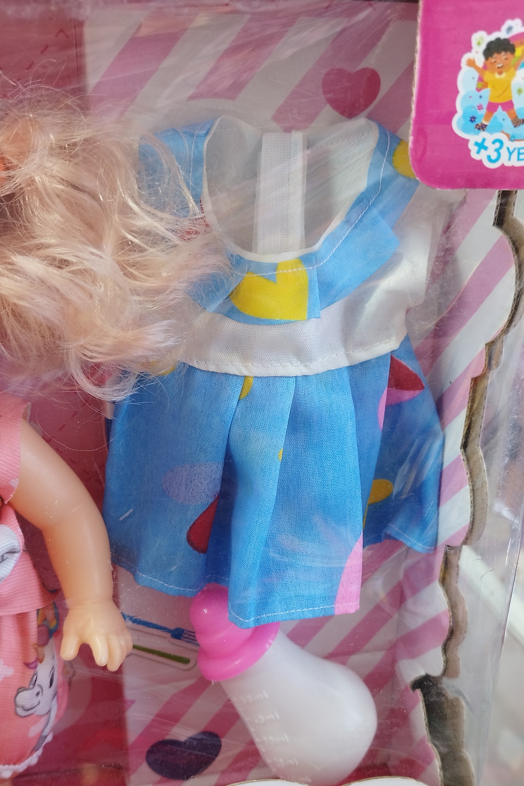 این عروسک دارای طرح نوزاد است و جنس دست و صورت آن گوشتی می باشد، یعنی با فشار دست فرو می رود. جنس عروسک از پلاستیک مرغوب است و هیچ گونه خطری برای کودک ندارد و در ساخت این اسباب بازی از مواد مضر برای سلامتی استفاده نشده است. ضمنا دارای لبه برنده یا تیز نیستند.